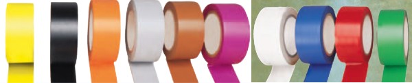 A wide selection of quality colored vinyl tape and vinyl aisle marking tape for all of your needs. Our Aisle Marking PVC Tapes are made from a durable vinyl film with a permanent acrylic adhesive system. Vinyl offers a matte smooth conformable tape that is great for marking hazards on floors, walls, equipment and pipe banding. Available in 1", 2", 3", 4" 6" widths x 108' or 180' rolls. Available Tape Colors: yellow, black, orange, gray, brown, purple, white, blue, red, green.